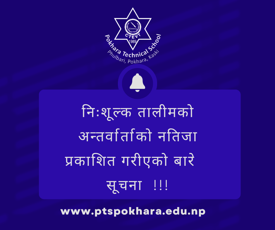 नि:शूल्क तालीममा फाराम भर्ने सम्बन्धि सूचना !!! Gallery नि:शूल्क तालीममा फाराम भर्ने सम्बन्धि सूचना !!! NOTICE नि:शूल्क तालीममा फाराम भर्ने सम्बन्धि सूचना !!! By Ptspokhara|2023-03-26T16:32:04+05:45March 26th, 2023|NOTICE|0 Comments Read More