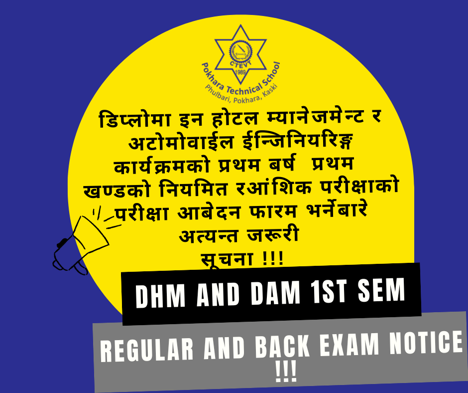 डिप्लोमा इन होटल म्यानेजमेन्ट र अटोमोवाईल ईन्जिनियरिङ्ग कार्यक्रमको प्रथम बर्ष प्रथम खण्डको नियमित रआंशिक परीक्षाको परीक्षा आबेदन फारम भर्नेबारे अत्यन्त जरूरी सूचना !!! Gallery डिप्लोमा इन होटल म्यानेजमेन्ट र अटोमोवाईल ईन्जिनियरिङ्ग कार्यक्रमको प्रथम बर्ष प्रथम खण्डको नियमित रआंशिक परीक्षाको परीक्षा आबेदन फारम भर्नेबारे अत्यन्त जरूरी सूचना !!! NOTICE डिप्लोमा इन होटल म्यानेजमेन्ट र अटोमोवाईल ईन्जिनियरिङ्ग कार्यक्रमको प्रथम बर्ष प्रथम खण्डको नियमित रआंशिक परीक्षाको परीक्षा आबेदन फारम भर्नेबारे अत्यन्त जरूरी सूचना !!! By Ptspokhara|2023-03-26T11:09:08+05:45March 26th, 2023|NOTICE|0 Comments Read More