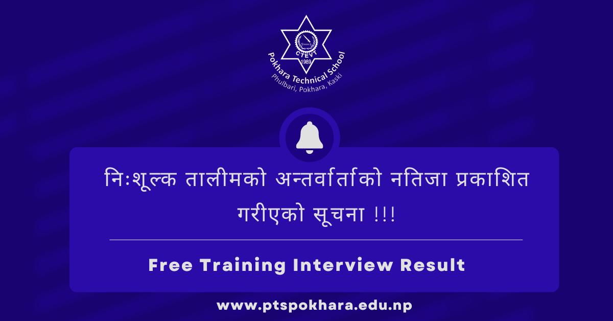 निःशूल्क तालीमको अन्तर्वार्ताको नतिजा प्रकाशित गरीएको सूचना !!! Gallery निःशूल्क तालीमको अन्तर्वार्ताको नतिजा प्रकाशित गरीएको सूचना !!! NOTICE निःशूल्क तालीमको अन्तर्वार्ताको नतिजा प्रकाशित गरीएको सूचना !!! By Ptspokhara|2022-12-09T19:01:23+05:45December 9th, 2022|NOTICE|0 Comments Read More