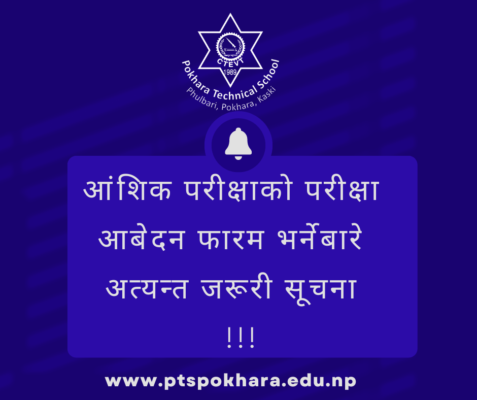 प्रमाणपत्र तह अप्थाल्मिक साइन्स कार्यक्रमहरुको प्रथम, दोश्रो र तेश्रो वर्षको र डिप्लोमा इन होटल मेनेजमेन्ट कार्यक्रमको प्रथम बर्ष दोश्रो खण्ड र अटोमोवाईल ईन्जिनियरिङ्ग कार्यक्रमको प्रथम बर्ष दोश्रो खण्डको नियमित तथा आंशिक परीक्षाको तालीका बारे सूचना !!! Gallery प्रमाणपत्र तह अप्थाल्मिक साइन्स कार्यक्रमहरुको प्रथम, दोश्रो र तेश्रो वर्षको र डिप्लोमा इन होटल मेनेजमेन्ट कार्यक्रमको प्रथम बर्ष दोश्रो खण्ड र अटोमोवाईल ईन्जिनियरिङ्ग कार्यक्रमको प्रथम बर्ष दोश्रो खण्डको नियमित तथा आंशिक परीक्षाको तालीका बारे सूचना !!! NOTICE प्रमाणपत्र तह अप्थाल्मिक साइन्स कार्यक्रमहरुको प्रथम, दोश्रो र तेश्रो वर्षको र डिप्लोमा इन होटल मेनेजमेन्ट कार्यक्रमको प्रथम बर्ष दोश्रो खण्ड र अटोमोवाईल ईन्जिनियरिङ्ग कार्यक्रमको प्रथम बर्ष दोश्रो खण्डको नियमित तथा आंशिक परीक्षाको तालीका बारे सूचना !!! By Ptspokhara|2023-01-25T11:58:01+05:45January 25th, 2023|NOTICE|0 Comments Read More