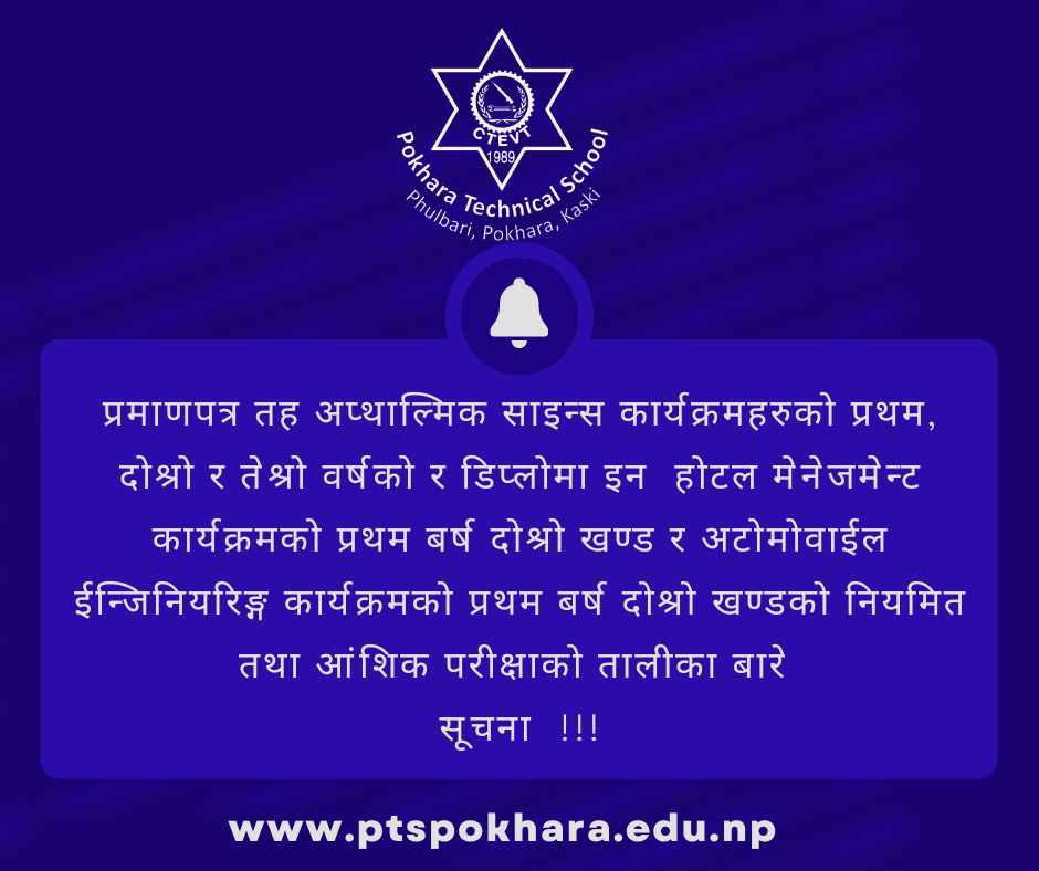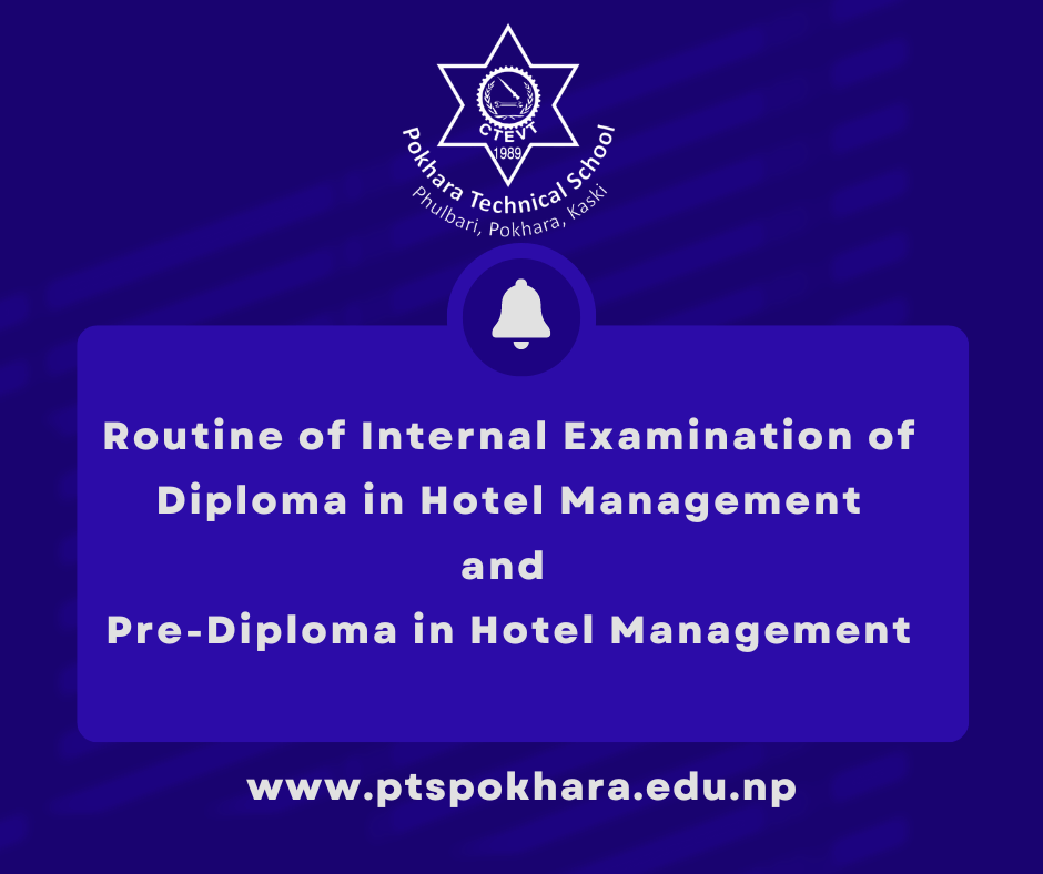 Routine of Internal Examination of Diploma in Hotel Management and Pre-Diploma in Hotel Management !!! Gallery Routine of Internal Examination of Diploma in Hotel Management and Pre-Diploma in Hotel Management !!! NOTICE Routine of Internal Examination of Diploma in Hotel Management and Pre-Diploma in Hotel Management !!! By Ptspokhara|2023-01-03T15:44:01+05:45January 3rd, 2023|NOTICE|0 Comments Read More