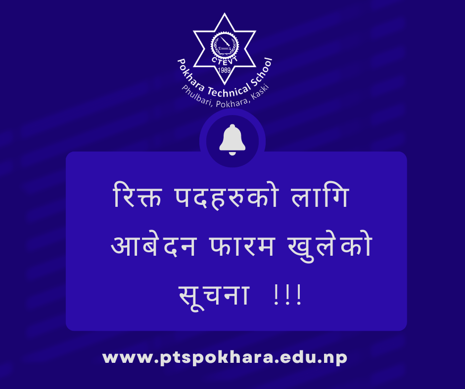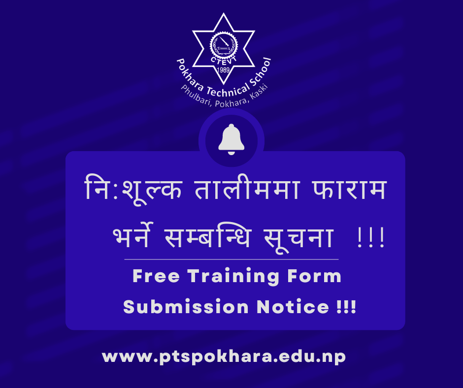 निःशूल्क तालीमको लागि आवेदन फाराम भर्ने सूचना !!! Gallery निःशूल्क तालीमको लागि आवेदन फाराम भर्ने सूचना !!! NOTICE निःशूल्क तालीमको लागि आवेदन फाराम भर्ने सूचना !!! By Ptspokhara|2022-11-23T13:54:11+05:45November 23rd, 2022|NOTICE|0 Comments Read More